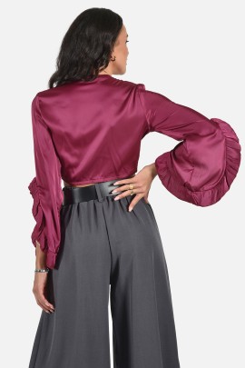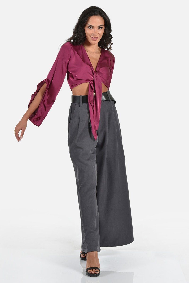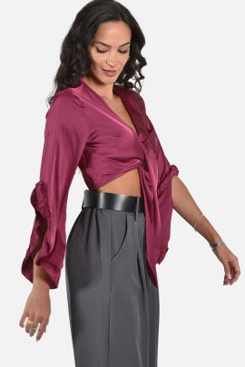 ΠΟΥΚΑΜΙΣΟ CROP ΣΑΤΙΝΕ ΜΕ ΑΝΟΙΓΜΑΤΑ ΣΤΑ ΜΑΝΙΚΙΑ