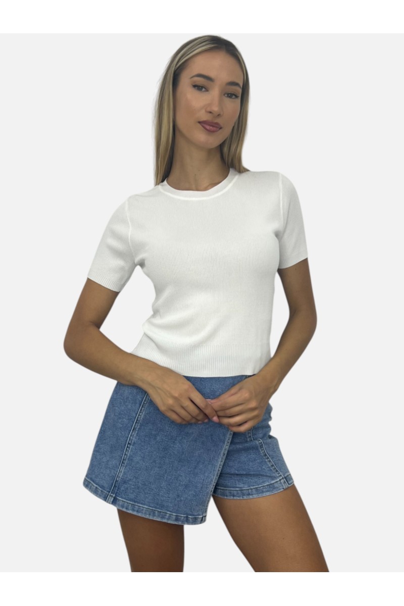 ΜΠΛΟΥΖΑ CROP ΜΕ ΚΟΝΤΟ ΜΑΝΙΚΙ ΜΟΝΟΧΡΩΜΗ
